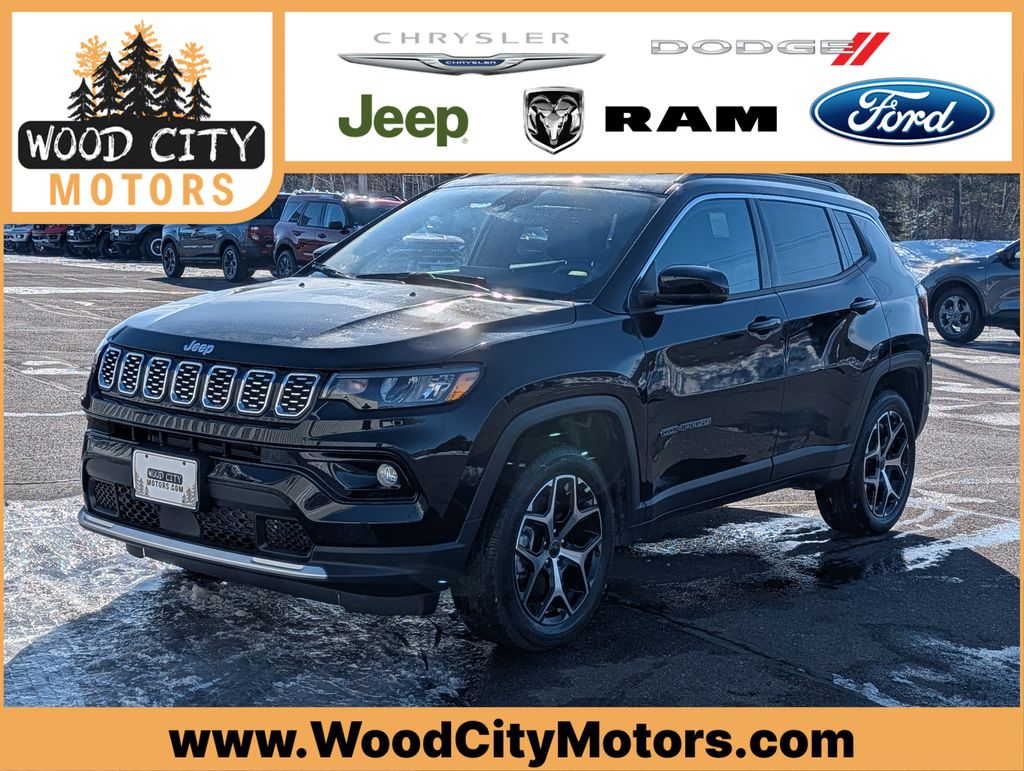 $2,487 off MSRP! Diamond Black Crystal Pearlcoat 2026 Jeep Compass Limited 4WD 8-Speed Automatic 2.0L I4 DOHC 4WD, 10.1" Touchscreen Display, 3.73 Final Drive Ratio, 4-Wheel Disc Brakes, 4G LTE Wi-Fi Hot Spot, 6 Speakers, ABS brakes, Air Conditioning, Alloy wheels, AM/FM radio: SiriusXM, Auto High-beam Headlights, Auto-dimming Rear-View mirror, Automatic temperature control, Brake assist, Bumpers: body-color, Compass, Delay-off headlights, Driver door bin, Driver vanity mirror, Dual front impact airbags, Dual front side impact airbags, Electronic Stability Control, Emergency communication system: SiriusXM Guardian, Four wheel independent suspension, Front anti-roll bar, Front Bucket Seats, Front Center Armrest w/Storage, Front dual zone A/C, Front fog lights, Front License Plate Bracket, Front reading lights, Fully automatic headlights, Global Telematics Box Module, Heated door mirrors, Heated front seats, Heated steering wheel, Illuminated entry, Knee airbag, Leather Shift Knob, Leather steering wheel, Leatherette Seats, Low tire pressure warning, Occupant sensing airbag, Outside temperature display, Overhead airbag, Overhead console, Panic alarm, ParkView Rear Back-Up Camera, Passenger door bin, Passenger vanity mirror, Power door mirrors, Power driver seat, Power Liftgate, Power steering, Power windows, Premium audio system: UConnect 5, Quick Order Package 29G Limited, Radio: Uconnect 5 with 10.1" Display, Rain sensing wipers, Rear anti-roll bar, Rear seat center armrest, Rear window defroster, Rear window wiper, Remote keyless entry, Security system, SiriusXM Guardian - Included Trail (B), SiriusXM Radio Service, Speed control, Split folding rear seat, Spoiler, Steering wheel mounted audio controls, Tachometer, Telescoping steering wheel, Tilt steering wheel, Traction control, Trip computer, Turn signal indicator mirrors, Variably intermittent wipers, Wheels: 18" x 7" Painted Diamond Cut Aluminum, 4WD.