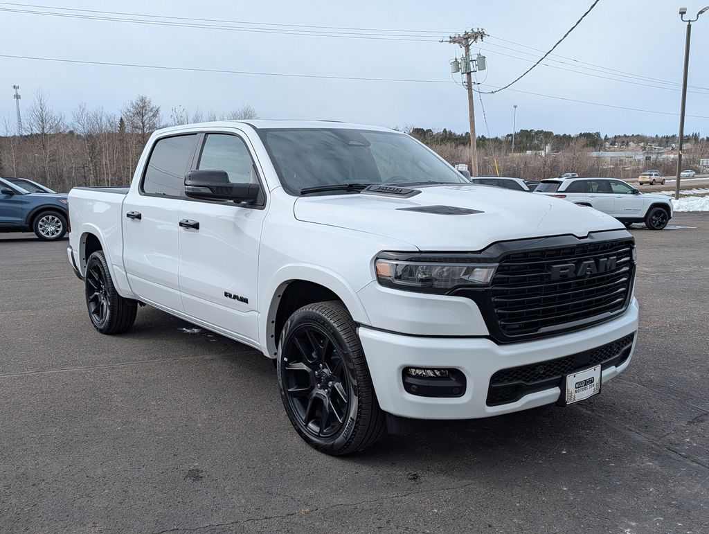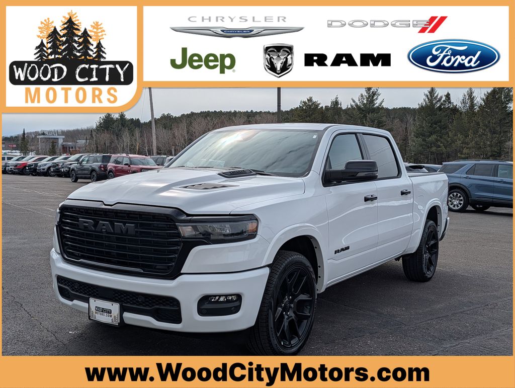 $8,894 off MSRP! Bright White Clearcoat 2026 Ram 1500 Laramie 4WD 8-Speed Automatic 3.0L I6 10 Speakers, 14.4" Touchscreen Display, 3.55 Rear Axle Ratio, 4-Wheel Disc Brakes, 4G LTE Wi-Fi Hot Spot, ABS brakes, Accent Color Door Handles, Accent Color Premium Power Mirrors, Accent Color Tailgate Handle, Active Noise Control System, Adjustable pedals, Air Conditioning, Alloy wheels, AM/FM radio: SiriusXM with 360L, Anti-Spin Differential Rear Axle, Apple CarPlay/Android Auto, Audio memory, Auto High-beam Headlights, Auto Power-Folding Mirrors, Auto-dimming door mirrors, Auto-Dimming Exterior Driver Mirror, Auto-dimming Rear-View mirror, Automatic temperature control, Black Exterior Truck Badging, Black Headlamp Bezels, Black Interior Accents, Black Painted Exterior Mirrors Caps, Black Tail Lamp Bezels, Body Color Front Bumper, Body Color Rear Bumper with Step Pads, Brake assist, Bumpers: chrome, Chrome Exterior Mirrors, Cluster 12" TFT Color Display, Compass, Connected Travel and Traffic Services, Connectivity - US/Canada, Convex Wide-Angle Exterior Mirror Insert, Delay-off headlights, Dome Dual LED Reading Lamp, Driver door bin, Driver vanity mirror, Dual Exhaust with Black Tips, Dual front impact airbags, Dual front side impact airbags, Dual-Pane Panoramic Sunroof, Electronic Stability Control, Exterior Mirrors Approach Lamps, Exterior Mirrors Courtesy Lamps, Exterior Mirrors with Heating Element, Exterior Mirrors with Memory, Exterior Mirrors with Supplemental Signals, Front anti-roll bar, Front Bucket Seats, Front Center Armrest w/Storage, Front dual zone A/C, Front fog lights, Front License Plate Bracket, Front Passenger Interactive Display, Front reading lights, Front wheel independent suspension, Fully automatic headlights, Garage door transmitter, GPS Navigation, Grille Surround 3 Black Texture 2 Black, Harman/Kardon 19 Speaker Premium Sound, Heated door mirrors, Heated front seats, Heated rear seats, Heated steering wheel, Illuminated entry, Integrated Center Stack Radio, Integrated Voice Command with Bluetooth, Laramie Level 2 Equipment Group, Leather steering wheel, Leather Trimmed Bucket Seats, LED Dome/Reading Lamp, Low tire pressure warning, Memory seat, MOPAR Front and Rear Rubber Floor Mats, Navigation System, Night Edition, Occupant sensing airbag, Off-Road Information Pages, Outside temperature display, Overhead airbag, Overhead console, Panic alarm, ParkView Rear Back-Up Camera, Passenger door bin, Passenger vanity mirror, Pedal memory, Pirelli Brand Tires, Power door mirrors, Power driver seat, Power passenger seat, Power steering, Power Tailgate, Power windows, Proximity Approach/Departure Lamps, Quick Order Package 21H Laramie, Radio data system, Radio: Uconnect 5 Nav with 14.4" Display, Radio: Uconnect 5 Navigation with 12.0" Display, Rain Sensitive Windshield Wipers, RAM Grille Badge - Black, RAM Grille Badge - Chrome, Rear anti-roll bar, Rear reading lights, Rear seat center armrest, Rear step bumper, Remote keyless entry, Security system, SiriusXM Radio Service, SiriusXM with 360L, Speed control, Split folding rear seat, Sport Performance Hood, Steering wheel mounted audio controls, Tachometer, Telescoping steering wheel, Tilt steering wheel, Traction control, Trip computer, Turn signal indicator mirrors, USB Host Flip, Variably intermittent wipers, Ventilated front seats, Voltmeter, Wheels: 20" x 9" Premium Paint/Polish, Wheels: 22" x 9" Forged Aluminum. Price includes: $3500 - 2026 National Retail Bonus Cash . Exp. 04/30/2026
